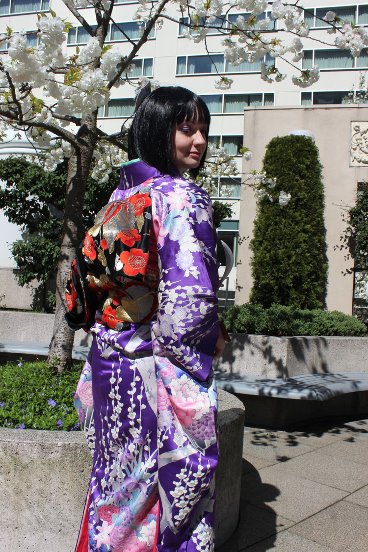 Despite being entirely bought, this cosplay was very difficult and time-consuming to put together. And the dressing (kitsuke) is far more difficult. It's an art form in of itself, there are even schools in Japan dedicated to learning how to properly dress, learn obi knots (musubi), and all the strict rules and subtle intricacies in choosing just the right motif for the season or kimono and obi for occasion. And of course, the dressing itself is a feat unto itself that requires a great deal of practice and perfecting. Kitsuke is one of my passions that I really enjoy learning, and I am thrilled to finally have a reason to put it into practice with my cosplay.